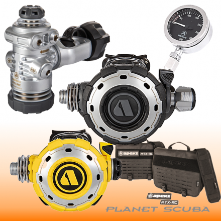 Packaged with Apeks MTX-R Octopus, Apeks Tek SPG Complete and Apeks MTX-RC Regulator Bag.