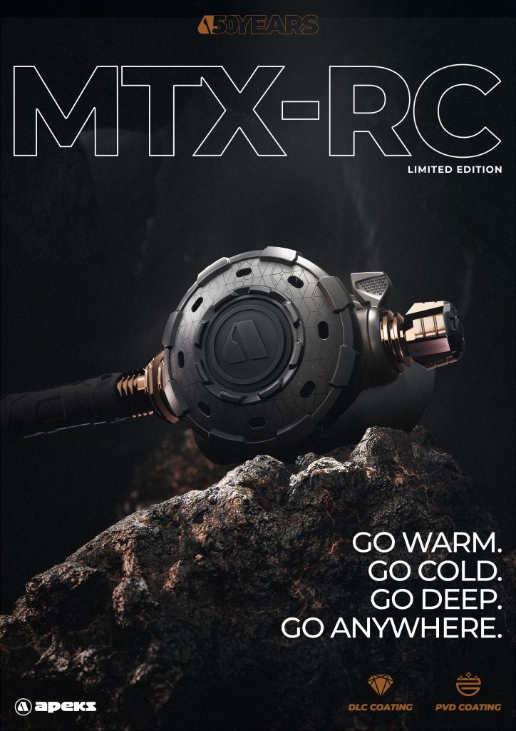 The MTX-RC 50th anniversary edition is exceptional in more ways than one. Featuring a unique coating, commemorative coin, and detailed pamphlet on Apeks’ history, all wrapped up in premium packaging for an exclusive dive regulator like no other.