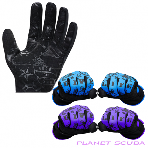 Aqua Lung Admiral III gloves comes with beautiful motifs and Dive Life knuckle tattoo!