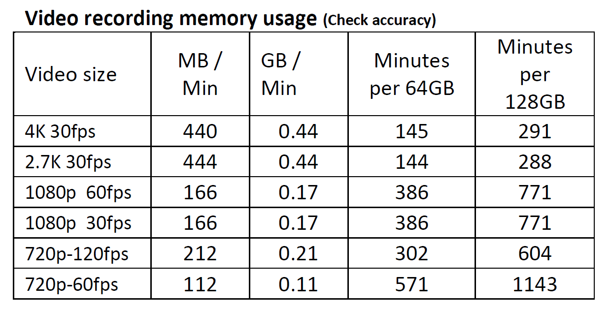 Video recording memory usage (Check accuracy)