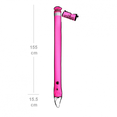 The over-pressure/dump valve releases the air automatically on ascent; by pulling the dump cord you can easily deflate the buoy on the surface.